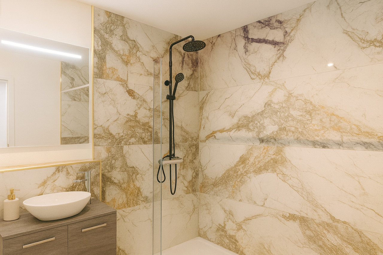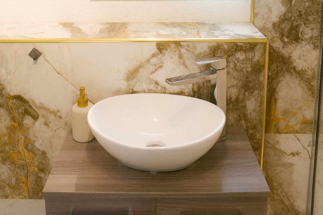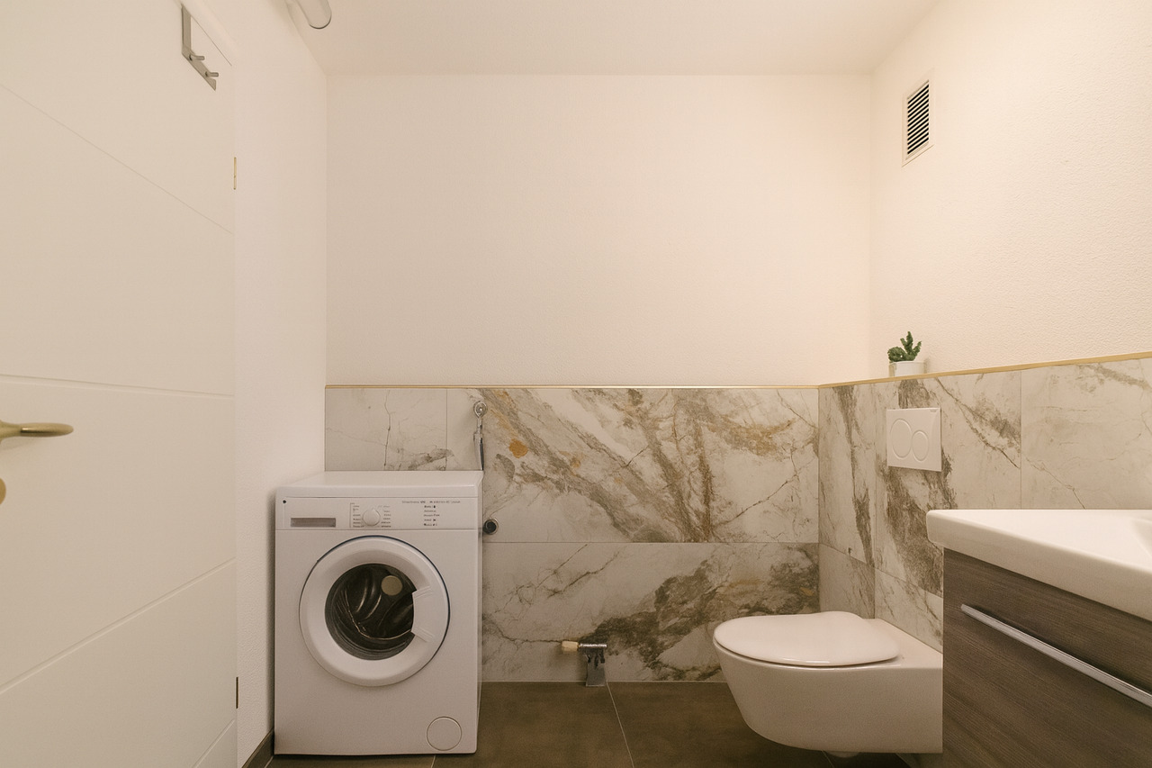 Mit Regendusche, stilvoller Sitzgelegenheit und sogar einer Waschmaschine, die du kostenlos nutzen kannst.